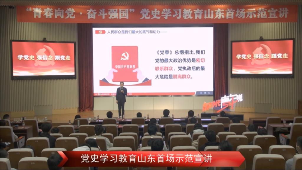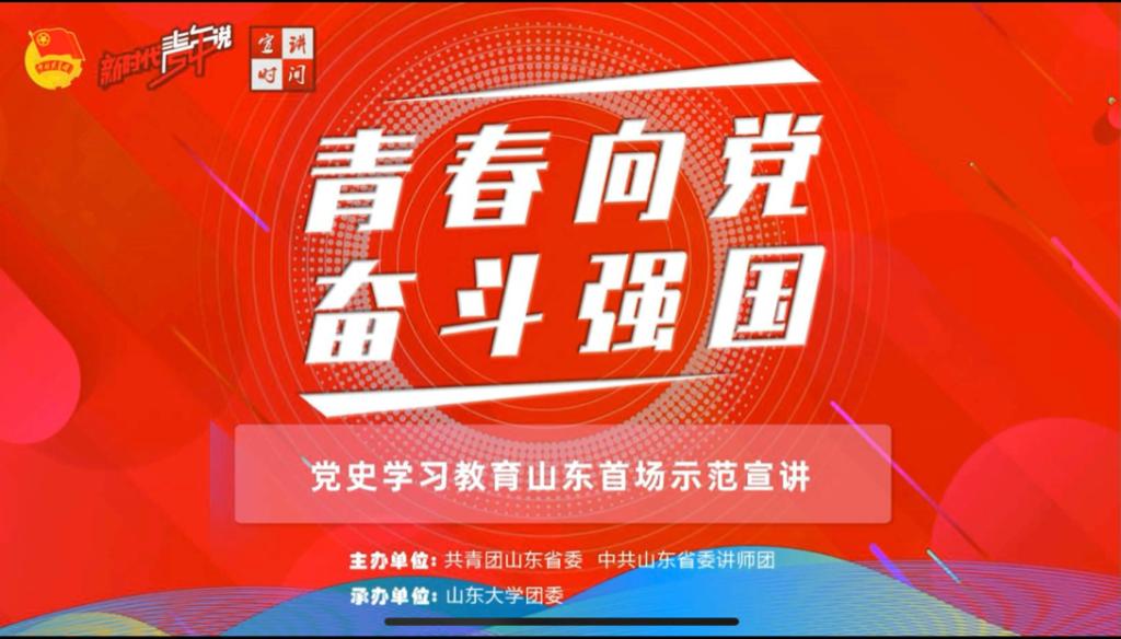 2021年4月16上午9:30-11:30,于山东网络直播平台,法学院有序组织学生收看了山东省首场“青春向党,奋斗强国”示范宣讲直播活动。此次活动旨在让同学们更加认识党,了解党,坚持学史明理、学史增信、学史崇德、学史力行,深刻领会习近平总书记的重要讲话的丰富内涵,扎实党史学习教育。